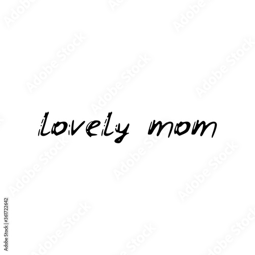 Lovely mom. Black text, calligraphy, lettering, doodle by hand isolated on white background Card banner design. Vector
