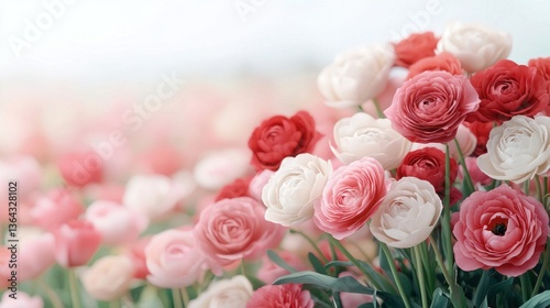 Lovely Ranunculus Flowers Blooming in a Field Soft Pink and White Ranunculus Blossoms