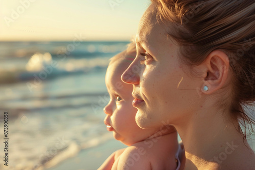 Lovely small kid having fun time with family weekend at tropical summer beach made with Generative AI