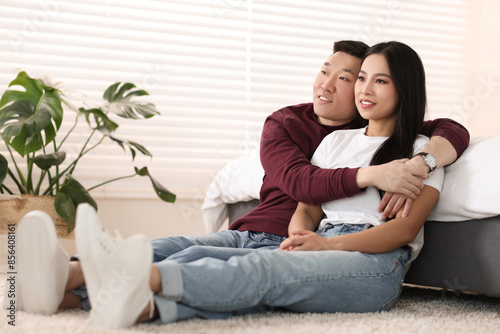 Lovely young couple on floor at home