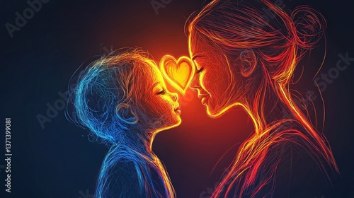 Loving Connection Between Mother and Child in Neon Art Style