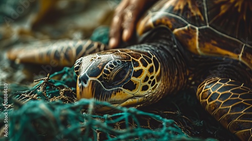 Loving Rescue of a Turtle on a Beach by Human Hands