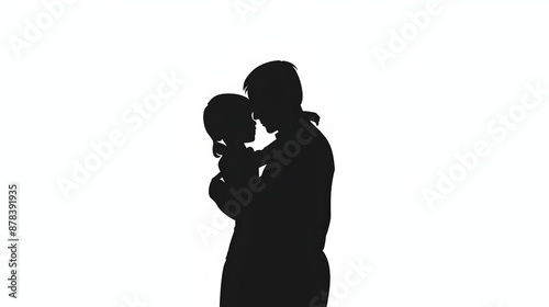 Loving Silhouette of Child Embracing Parent in Tender Moment