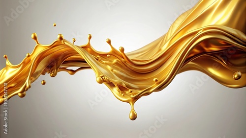 Low angle gold oil paint flow on white canvas with glitter splashes on background