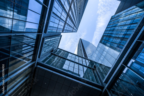 low angle view of skyscrapers in city of China.