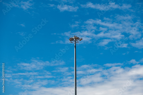 Low Angle View Of Street Lamps Against Clear Blue Sky