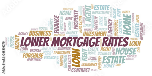 Lower Mortgage Rates word cloud. Wordcloud made with text only.