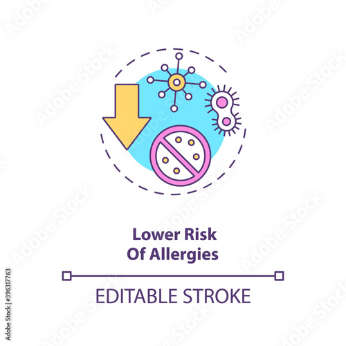 Lower risk of allergies concept icon. Breastfeeding benefits. Weaken your immune system. Viruses and germs idea thin line illustration. Vector isolated outline RGB color drawing. Editable stroke