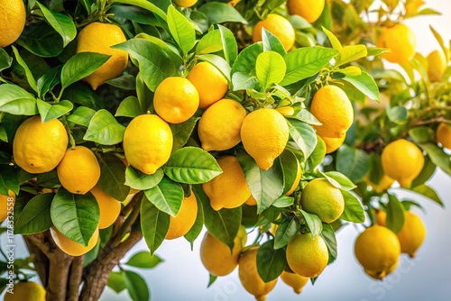 Low-light lemon tree, vibrant harvest, nature's citrus bounty.