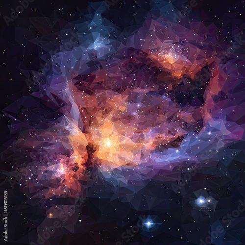Low-poly nebula art, cosmic background, space exploration, science fiction