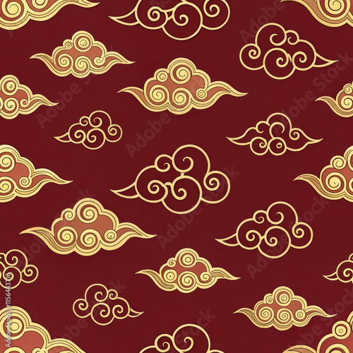 Lucky Clouds: Minimalist Chinese New Year Fabric Pattern