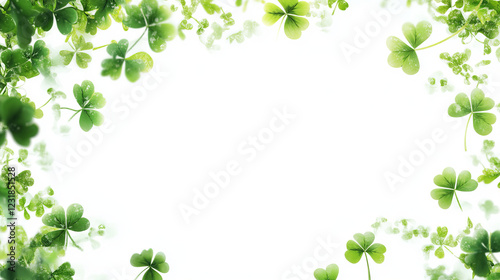 Lucky four leaf clover, border for Irish Patricks day background. Green shamrock leaves, wavy divider isolated on transparent background, vector realistic illustration