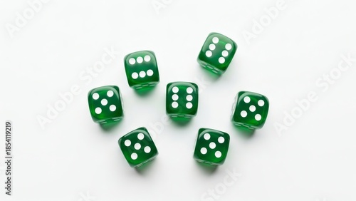 Lucky Green Dice Array on White Backdrop.