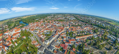 Luftaufnahme der Stadt Neuburg an der Donau, Panoramablick über die Stadt