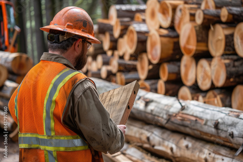 Lumber worker examining a piece of wood