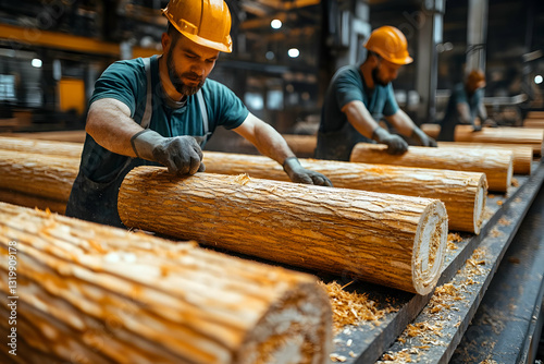 Lumberyard Workers Processing Logs