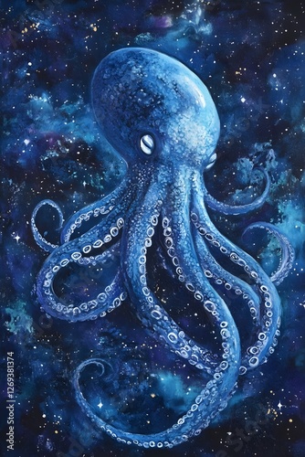 Luminescent Squid in a Celestial Night Sky - Blending Astronomy and Marine Life in Detailed Fantasy