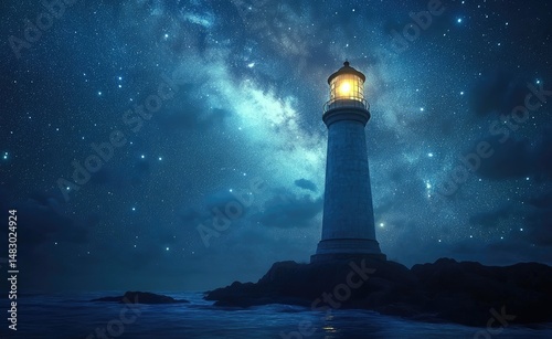 Luminous beacon in a starlit night