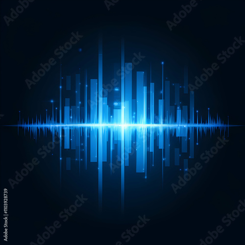 Luminous blue digital waveform, suggesting dynamic sound environment with glowing bars For Social Media Post Size