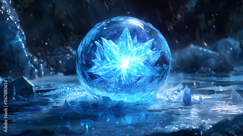 luminous blue ice orb