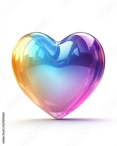Luminous heart with vibrant rainbow gradient colors against a clean white backdrop in a studio shot