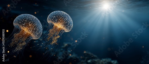 Luminous Jellyfish Underwater Scene Dramatic Ocean Life Stock Photo