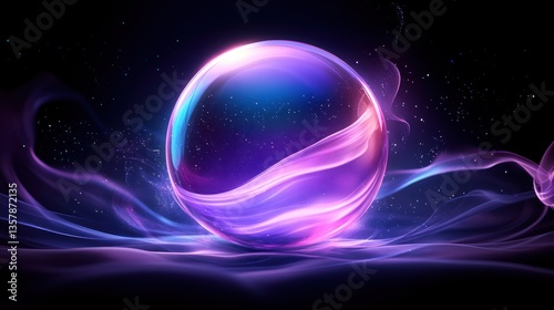 Luminous Orb Amidst Cosmic Purple Nebula Swirls