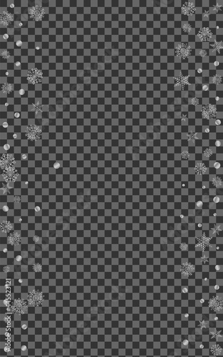 Luminous Snow Background Transparent Vector. Dot Xmas Texture. Grey Snowflake Design. Metal Graphic Card.