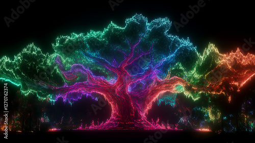 Luminous Tree of Life A Symbol of Growth and Connection Illuminated in Glowing Spectrum Colors
