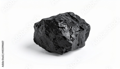 Lumpy Black Coal Piece Isolated on White Background Fuel Energy Resource