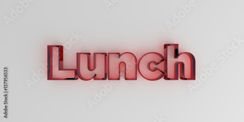 Lunch - Red glass text on white background - 3D rendered royalty free stock image.