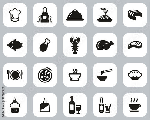 Lunch Or Restaurant Lunch Icons Black & White Flat Design Set Big