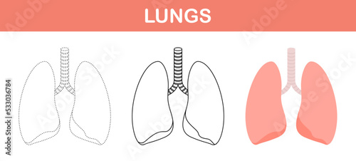 Lungs tracing and coloring worksheet for kids