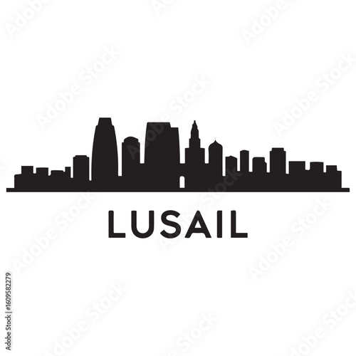 Lusail city skyline. Black cityscape banner. Vector black silhouette. with white background