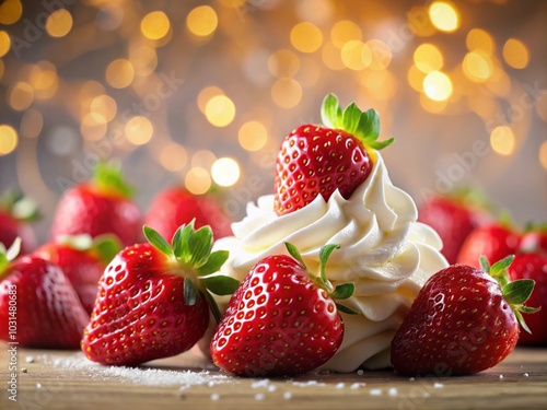 Luscious Strawberries and Whipped Cream with Bokeh Background for Culinary Photography