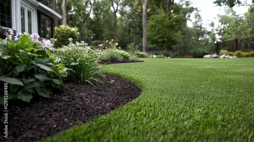 Lush Backyard Landscaping, Home Garden, Neatly Maintained. Potential use Stock photo for home improvement or landscaping