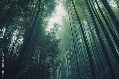 Lush Bamboo Forest in Kyoto's Arashiyama Region. AI generated illustration