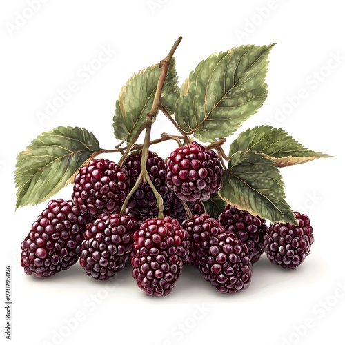 Lush deep red mulberry cluster against a pristine white background rendered in a captivating watercolor style This vibrant natural still life image exudes elegance and premium