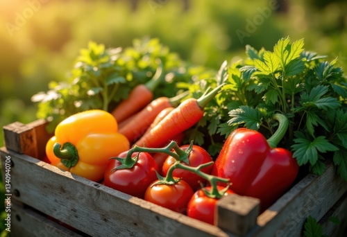lush farm fresh vegetables glimmering dew under bright sunlight showcasing bounty vibrancy, agriculture, harvest, organic, produce, garden, freshness