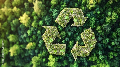Lush Foliage Recycling Symbol - Carbon Neutral Concept Showcasing Sustainability and Environmental Protection