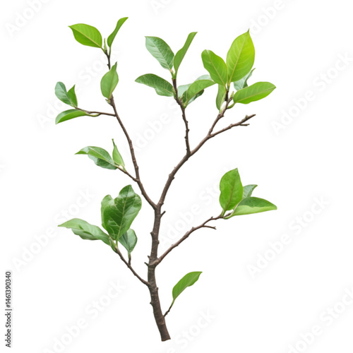 Lush Green Branch Isolated on Black Background Spring Growth New Life Nature Photography