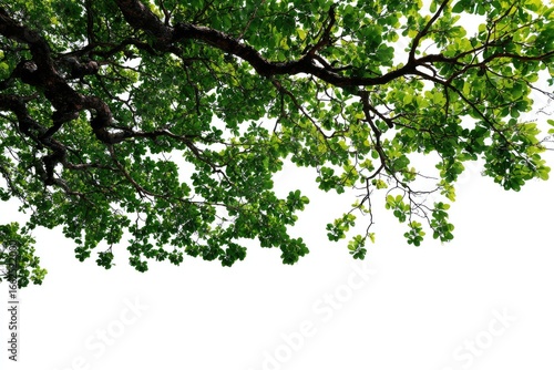 Lush green branches and leaves against a white background