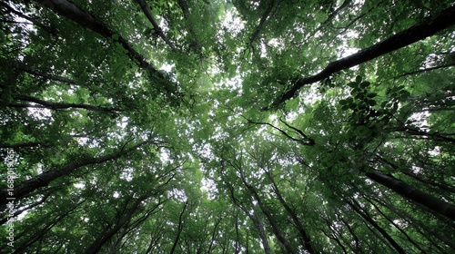 Lush Green Canopy of Trees Reaching Towards the Bright Sky Above