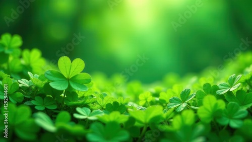 Lush Green Clover Field in Soft Sunlight A Vibrant Nature Image Featuring a Close-Up of Vivid Green Clover Leaves with a Gently Blurred Background