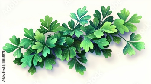 Lush Green Foliage Arranged Artistically on White