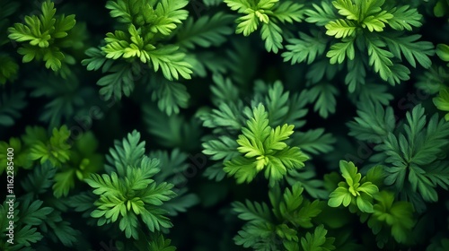 Lush green foliage fills the frame, showcasing intricate leaf patterns and vibrant textures in a natural setting.