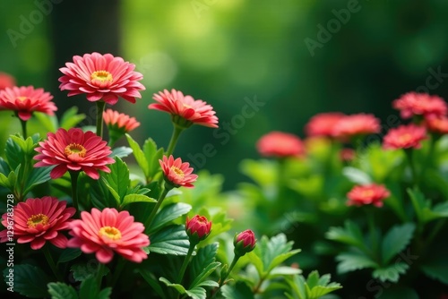 lush green foliage surrounding the chrysanthemums, surroundings, landscape, nature