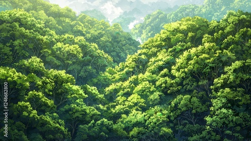 Lush Green Forest Hills Sunlight Pixel Art