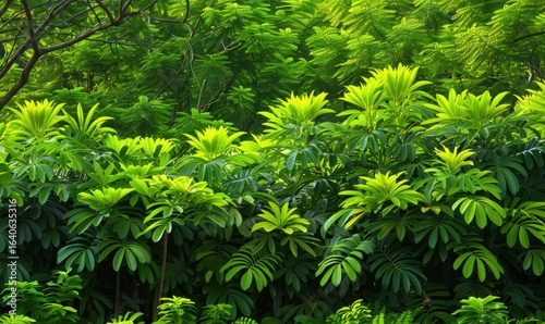 Lush green forest scene with vibrant foliage background abundant growth