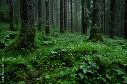 lush green forest with moss-covered trees